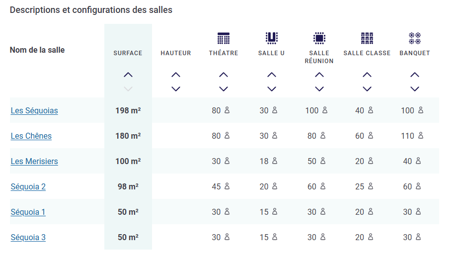 Le domaine met à votre disposition 11 salles de réunion modulables, parfaitement adaptées à tous vos besoins . Que ce soit pour une conférence, un séminaire ou un workshop, ces espaces peuvent accueillir jusqu’à 150 participants dans différentes configurations : théâtre, U, îlots, banquet ou cocktail.