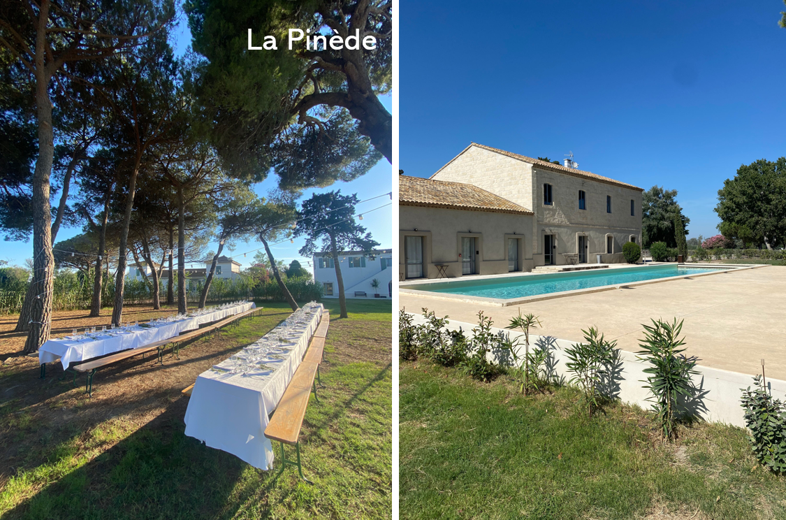 La salle Pinède, d'une superficie de 65 m², possède une ouverture vers l'extérieur et une grande luminosité grâce à ses nombreuses fenêtres. Cette salle peut accueillir jusqu'à 25 personnes en disposition U.
