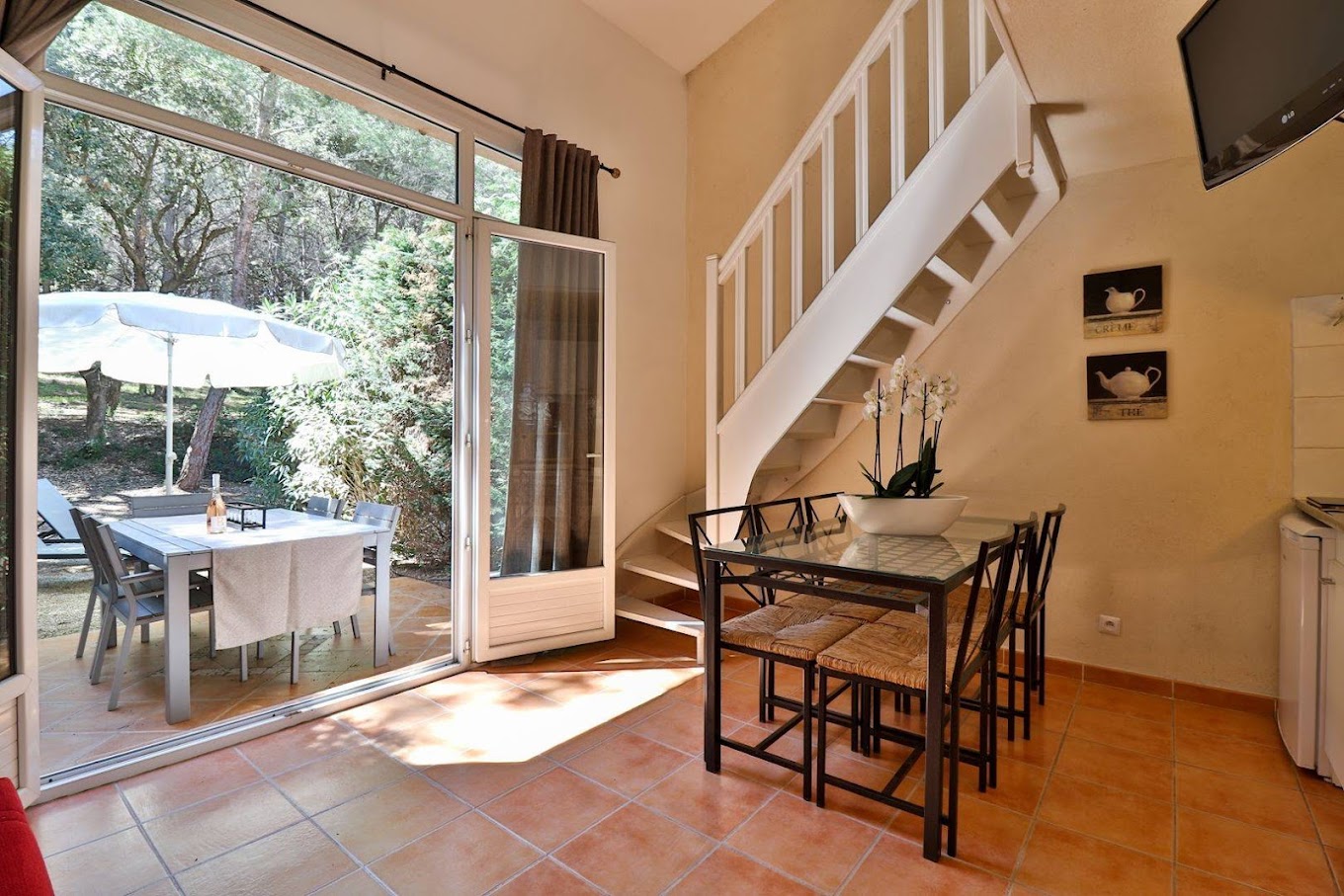 Coin cuisine équipé Transat sur le balcon, terrasse Tv écran plat Wifi type fibre Climatisation