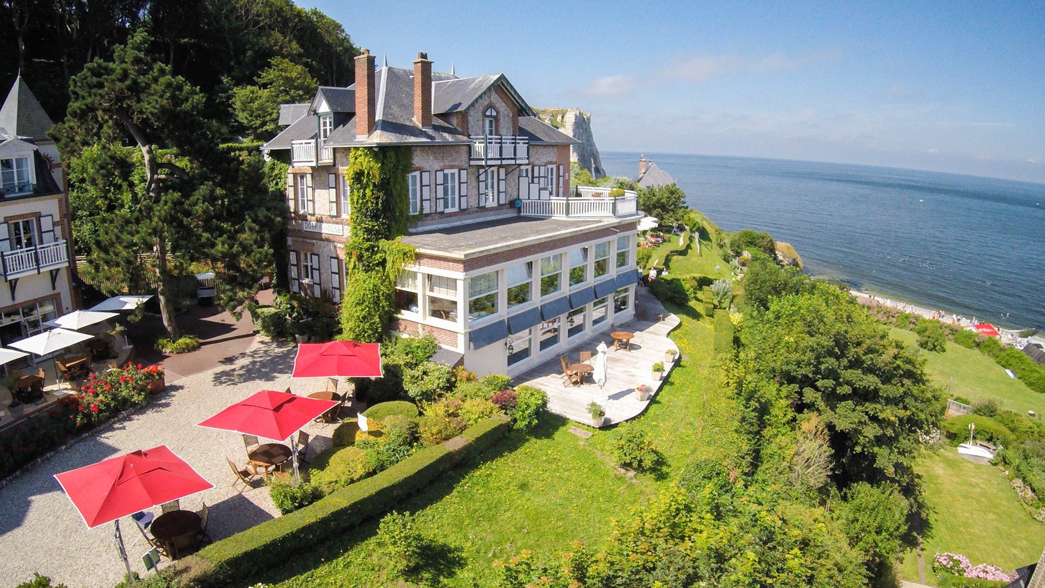 Surplombant la mer et le village d’Étretat, au calme, dans un parc de 4 hectares, le Dormy House, hôtel de charme et restaurant, est reconnu comme l’un des fleurons du littoral cauchois. 58 chambres et 3 suites, un restaurant et 3 salles de réunion pour vos séminaires (les 3 suites peuvent être converties en salle de sous-commission pour des ateliers en sous-groupes). Une vue spectaculaire sur la mer. L'hôtel est en cours de passage du 3* au 4*