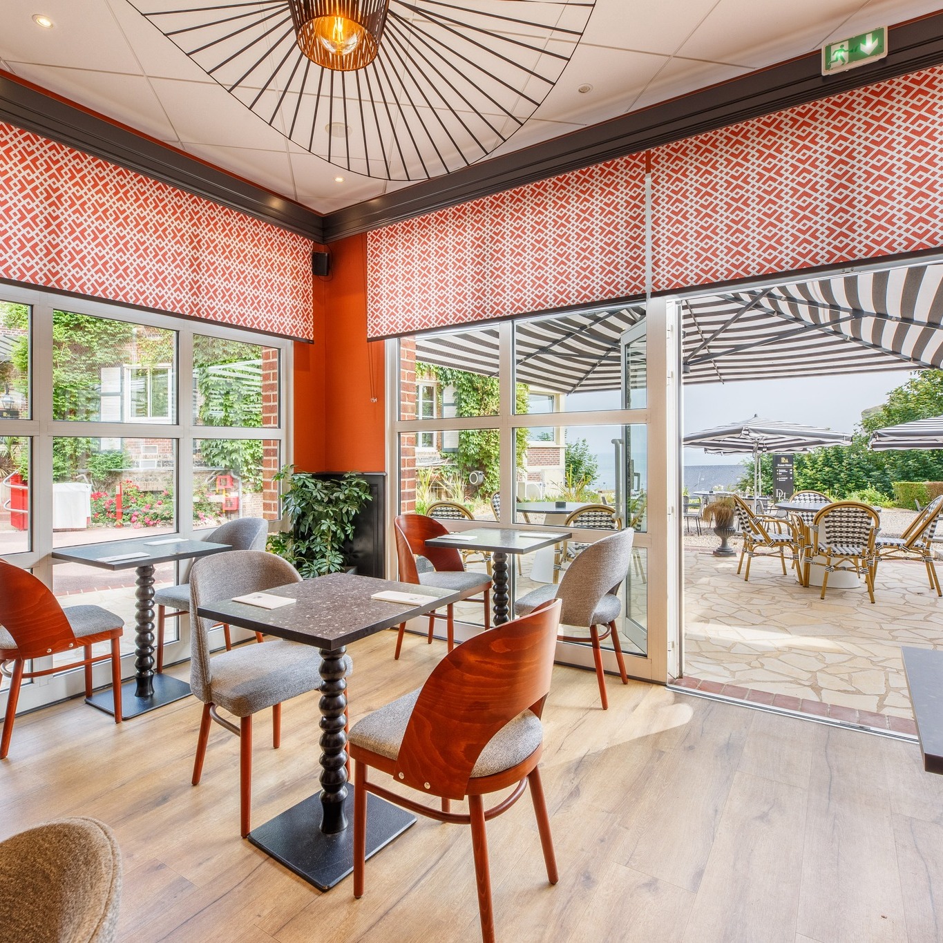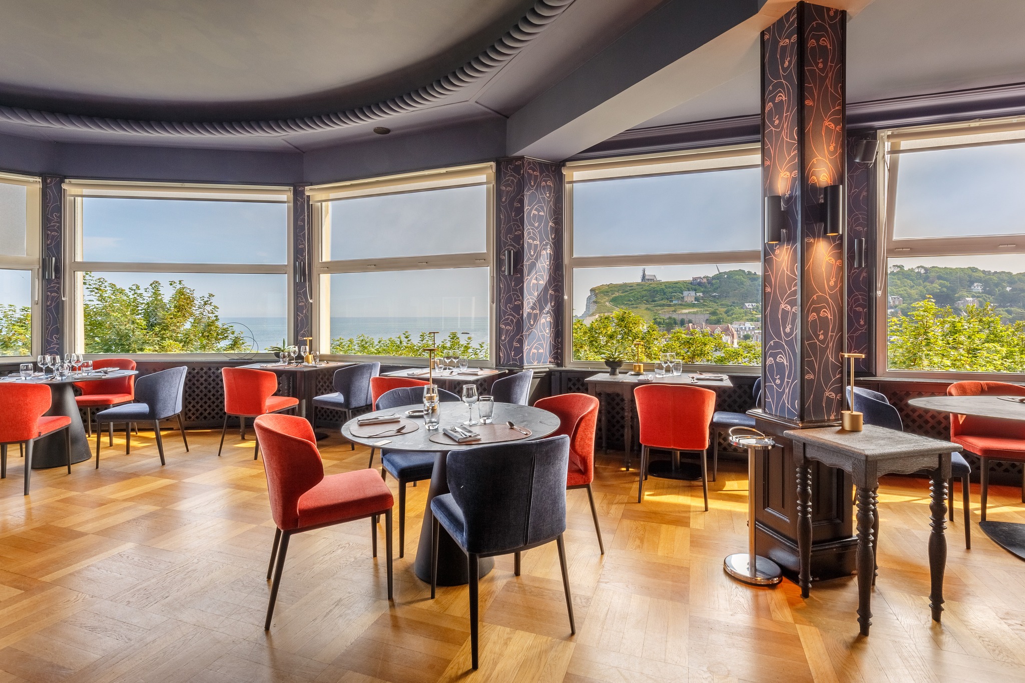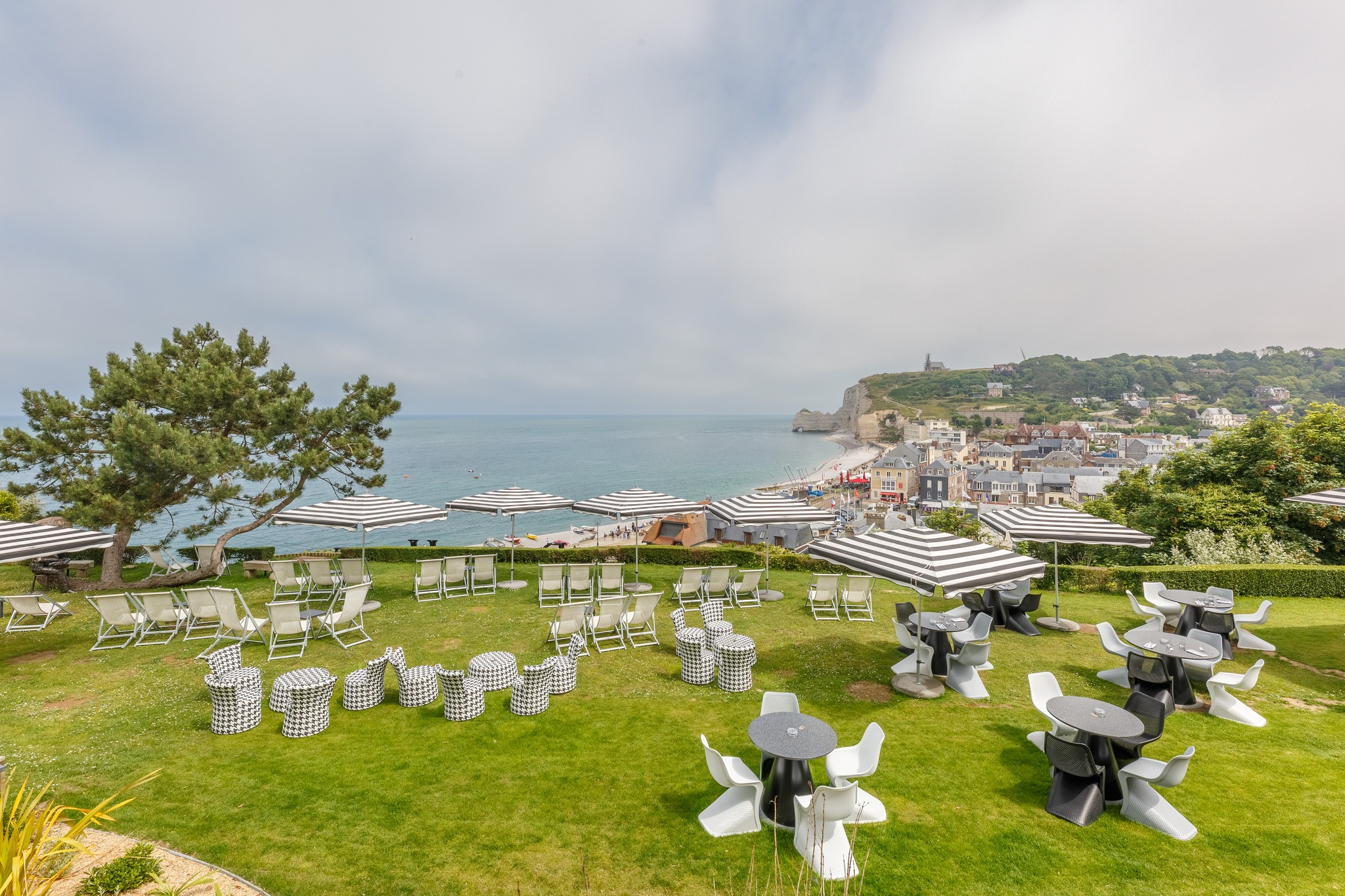 Toutes les chambres disposent de lit double ou twin, connexion wifi gratuite, minibar, télévision à écran plat avec chaînes par satellite et salle de bain privative équipée d’une baignoire ou d'une douche à l’italienne. Certains logements sont communicants et la majorité d'entre eux offrent une vue sur la mer et le village d'Étretat.