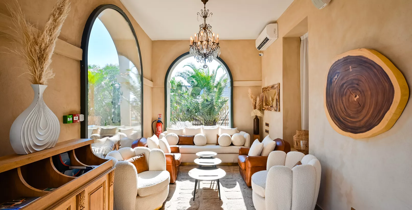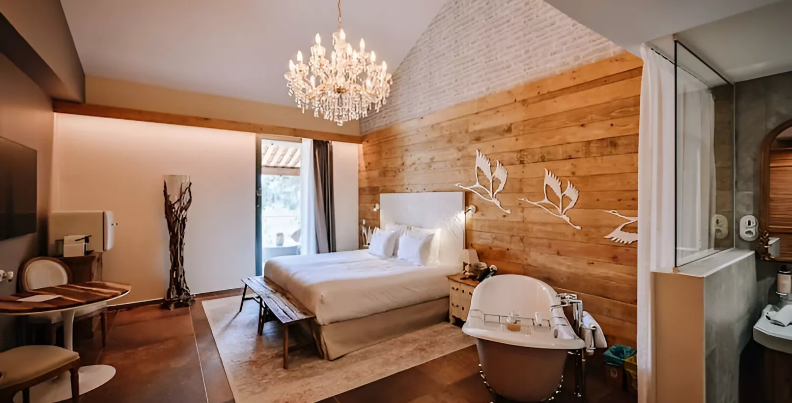 Au cœur d’une pinède préservée, ce domaine propose 43 chambres conçues comme de véritables écolodges, où nature et confort se rencontrent en toute harmonie. Ici, le bois flotté raconte son histoire, les tons sable et lin rappellent la douceur du littoral, et les matières brutes comme la pierre et le rotin créent une atmosphère apaisante.