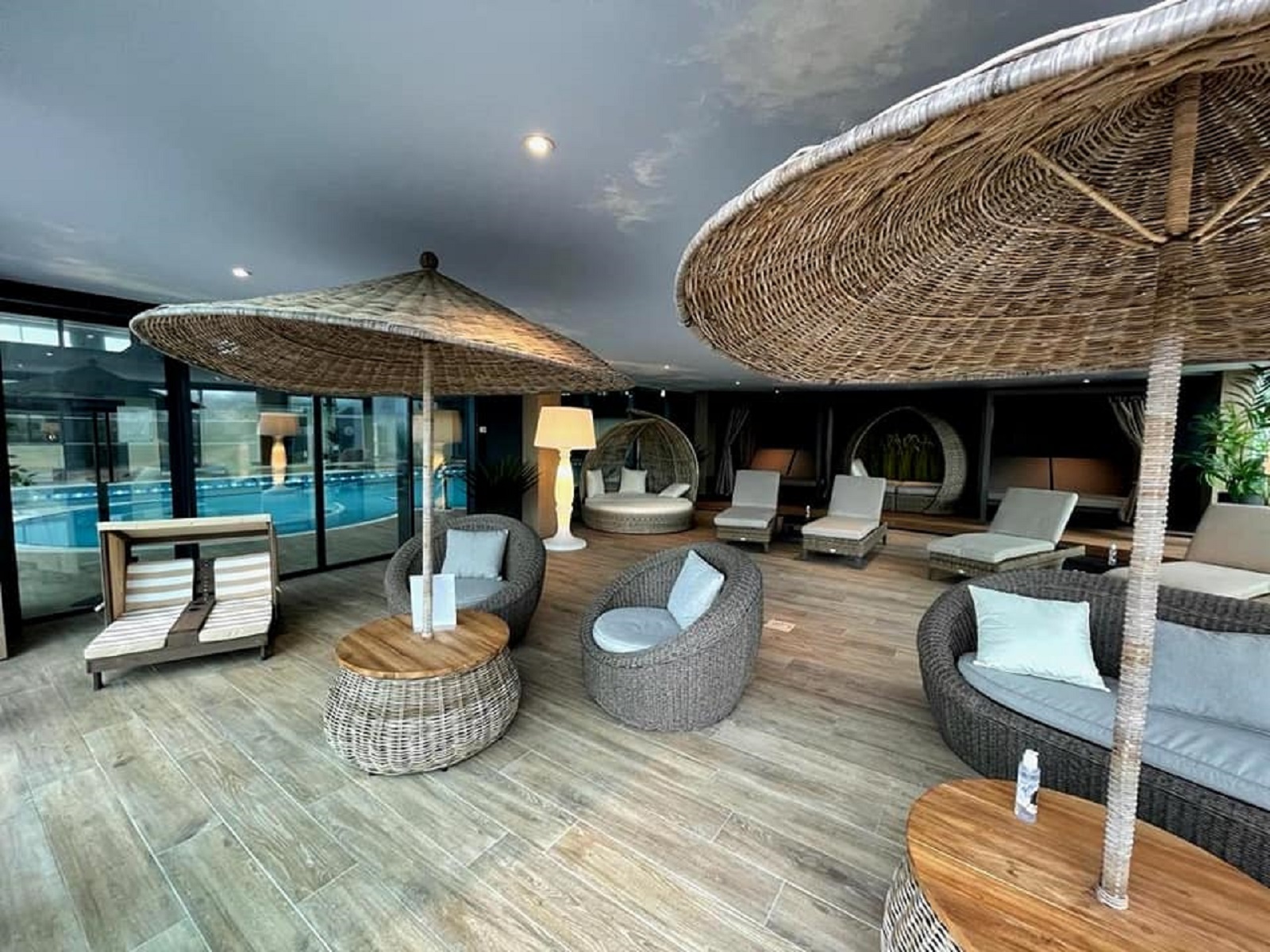 Selon l’humeur du temps, les pauses sucrées, salées, iodées ou vitaminées s’invitent dans les salons ou sur la grande terrasse privative face à la piscine d’eau de mer sur fond de sable