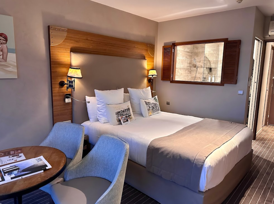 Telles de grandes cabines, les 97 chambres sont une véritable promesse de sérénité pour vos nuits à bord. Les couleurs sont douces et la décoration invite à poursuivre le « rêve de croisière ». Goûtez au privilège d’une vue panoramique dominant l’océan. Véritables atouts de l’hôtel, les salles de bains s’ouvrent sur la chambre avec de charmantes persiennes et offrent le plaisir de prendre une douche avec la mer comme seul horizon…