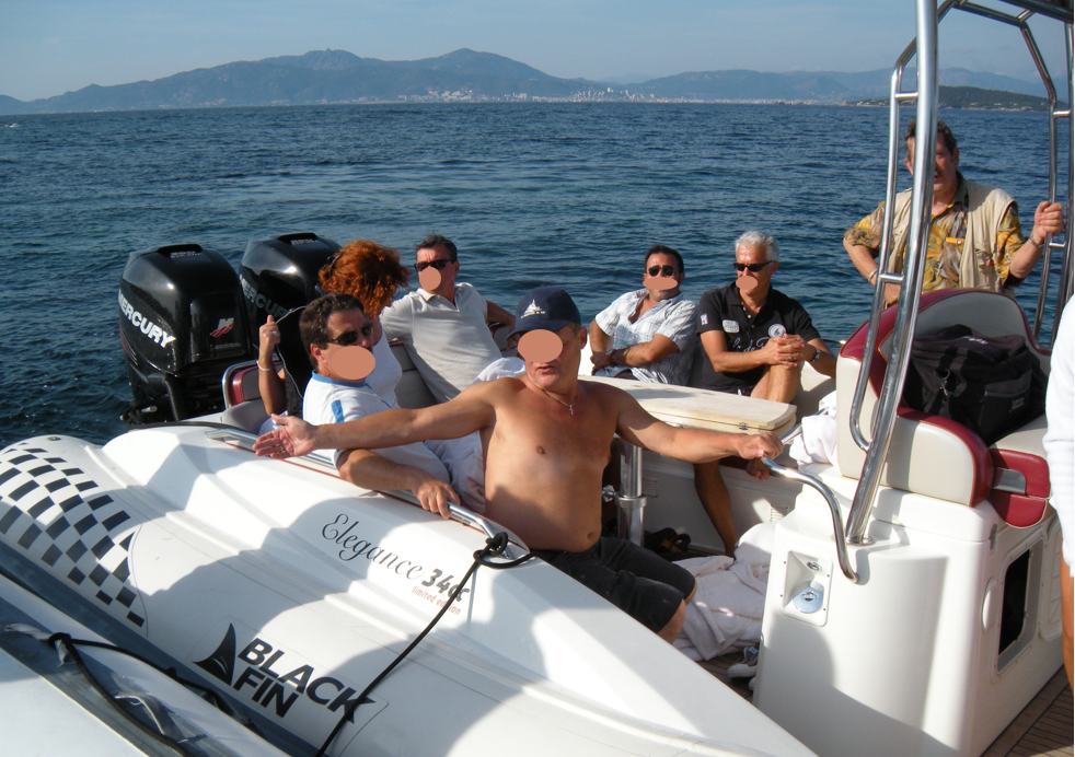 Départ directement depuis le ponton de l’hôtel en semi-rigides, privatisés pour le groupe.