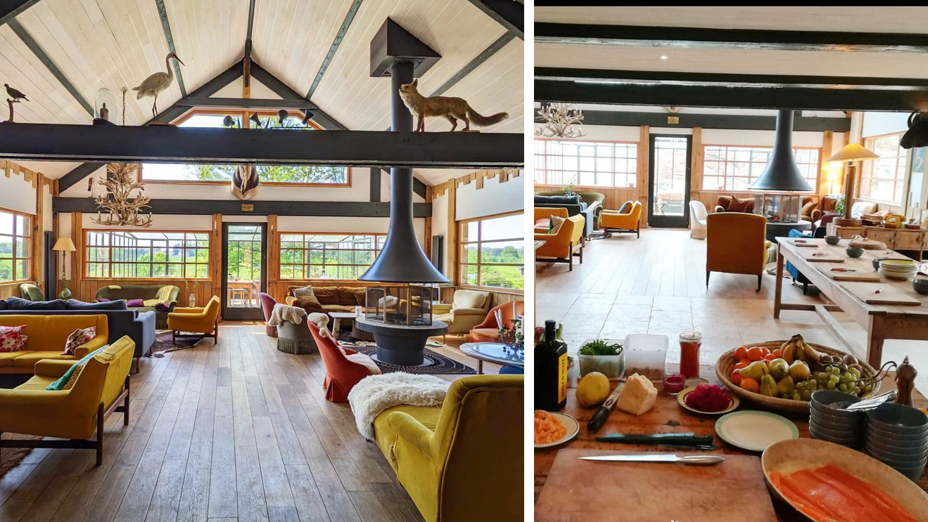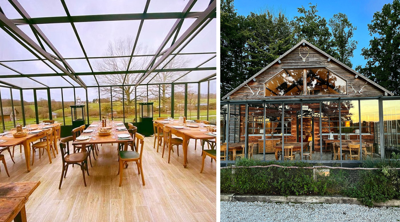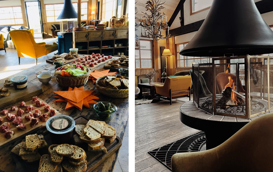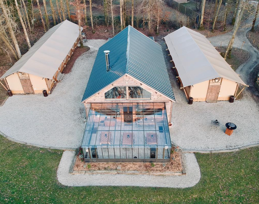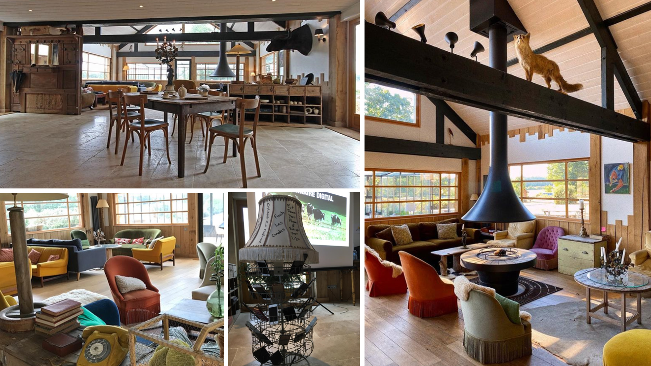 A l’entrée du domaine, passés les locaux d’accueil vous traversez un bois et ainsi s’ouvre à vous la clairière. Le premier bâtiment est Le Lounge, un salon de 150m² avec des coins feutrés mais aussi un bar, beaucoup de canapés, une cheminée ouverte et une grande verrière. C’est un endroit chaleureux pour se retrouver, boire un verre, travailler, danser, ou rêver au coin du feu.