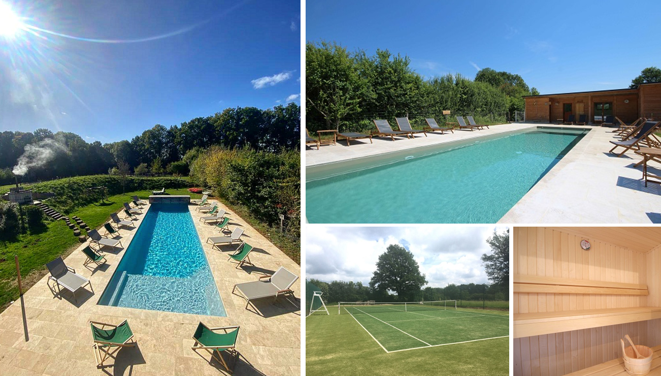 Vous découvrirez aussi d’autres espaces : une salle de projection, une tente safari de réflexion, une autre de réception, une salle de jeux, un cellier, un verger, une ferme et notre basse-cour… mais aussi une piscine, un sauna, un boulodrome, un tennis