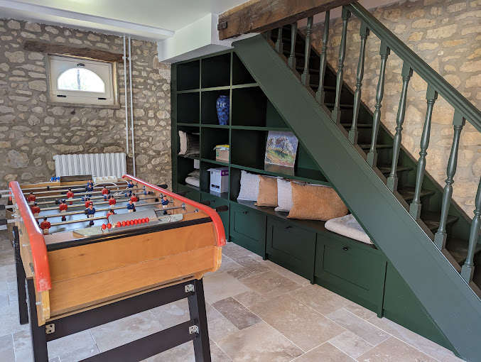 Des espaces communs chaleureux, pleins de charme et minutieusement décorés de meubles vintages. Vous y trouverez tout ce dont vous avez besoin pour avoir des moment de détente et de partage : cheminée, livres, jeux de société, baby-foot, piano, sono, télévision connectée avec les chaînes du câble et plateformes VOD. La "Family Room" offre une ambiance cosy avec grand écran parfait pour vos soirées en équipe