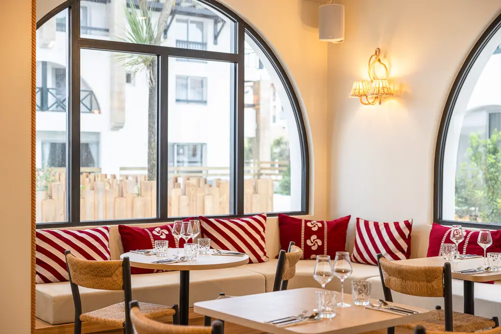 Le restaurant de l’établissement célèbre la richesse du terroir basque et de la culture ibérique, à travers une cuisine raffinée, où produits locaux et saveurs océanes s’entremêlent avec subtilité.