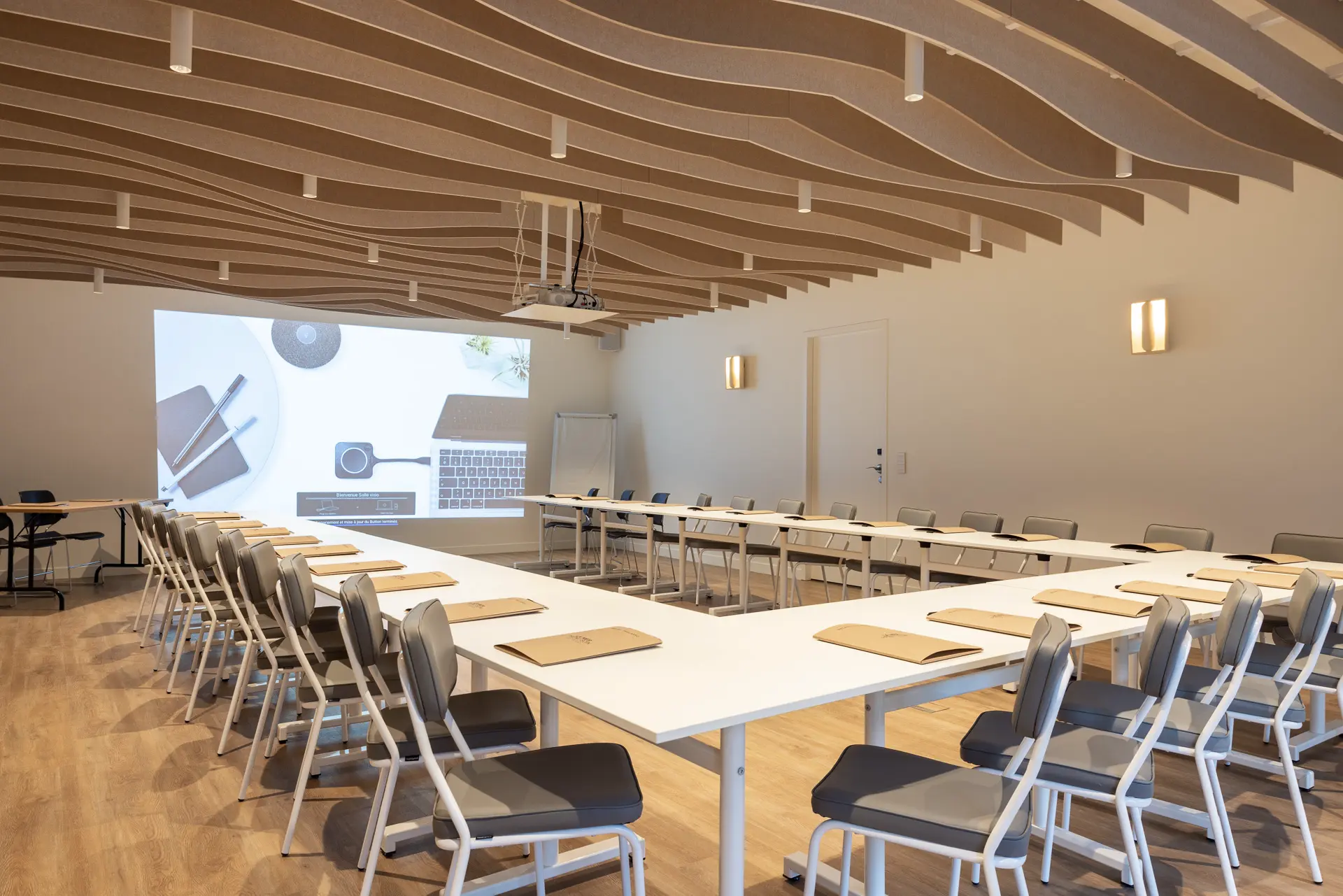 Salle Aroka : Dotée d’une configuration classique, elle peut accueillir jusqu’à 50 personnes. Idéale pour les séminaires, conférences et réunions plénières, elle bénéficie d’un équipement complet avec vidéoprojecteur, écran et connexion Wi-Fi haut débit.