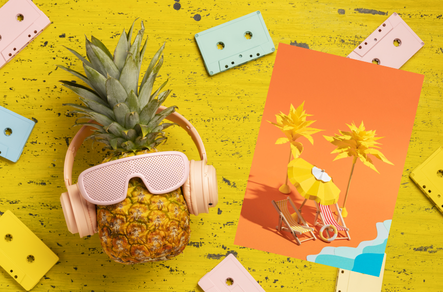 Nous recréons pour vous un décor de vacances : parasols rayés, mobilier en osier, bouées XXL, guirlandes lumineuses, playlist chill ou DJ set Sunset…